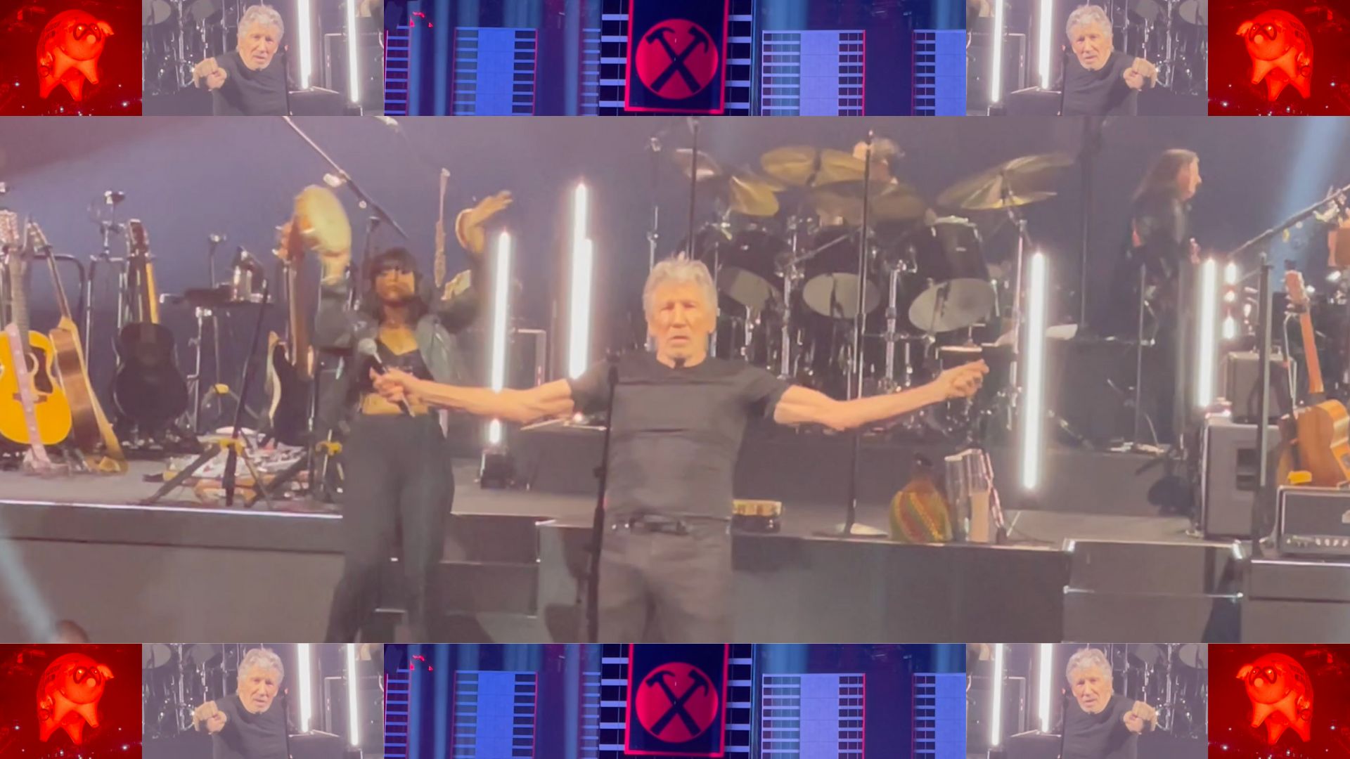 Dall’inizio con alcune comunicazioni dello stesso Roger Waters a Another Brick In The Wall Part 3, passando per la nuova versione di Comfortably Numb, The Happiest Days Of Our Lives/Another Brick In The Wall Part 2, Money, Sheep e il maiale Algie durante Run Like Hell.